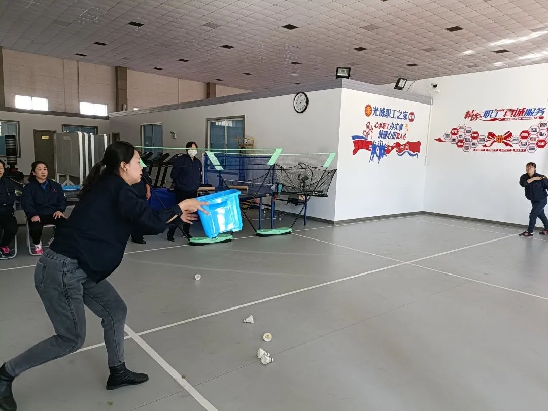 羽毛球趣味項(xiàng)目隔河傳物,需4人站在發(fā)球線后方依次發(fā)球,1人站在球場(chǎng)另一邊手拿收納筐接球。如何在有限的發(fā)球機(jī)會(huì)中,投進(jìn)更多的球,除了要考慮發(fā)球力度、角度之外,更對(duì)團(tuán)隊(duì)之間的默契配合提出了挑戰(zhàn)。